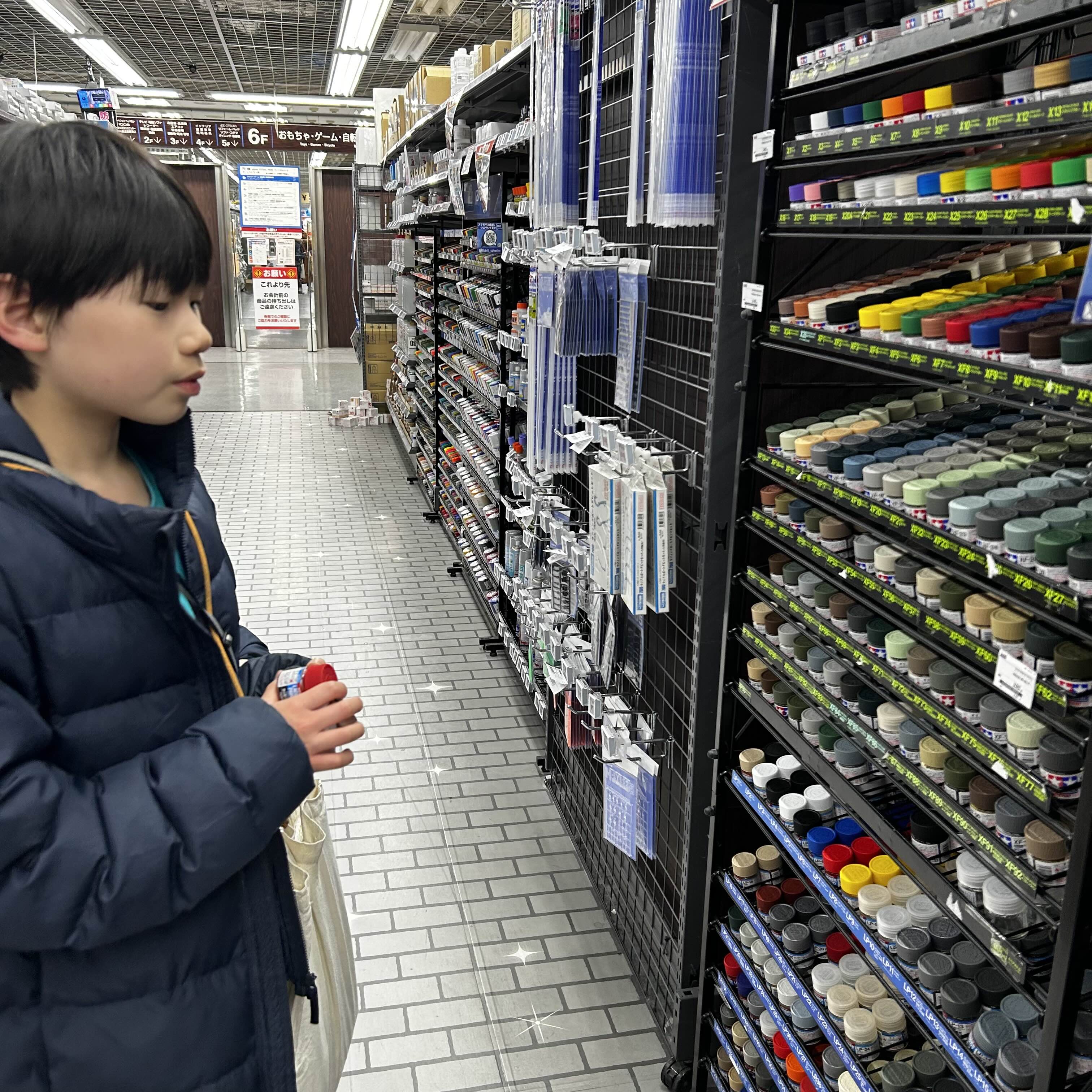 프라모델 전문점을 찾았다. 2층에 올라가서 사진을 보여주니 만화에서 오타쿠 캐릭터 같은 남자 직원이 AI 같은 말투로 “이 물감은 저희 매장 3층에서 취급하고 있습니다.” 안내해 줬다. 사람과 대화하는 법을 책으로 배운 느낌이었다.