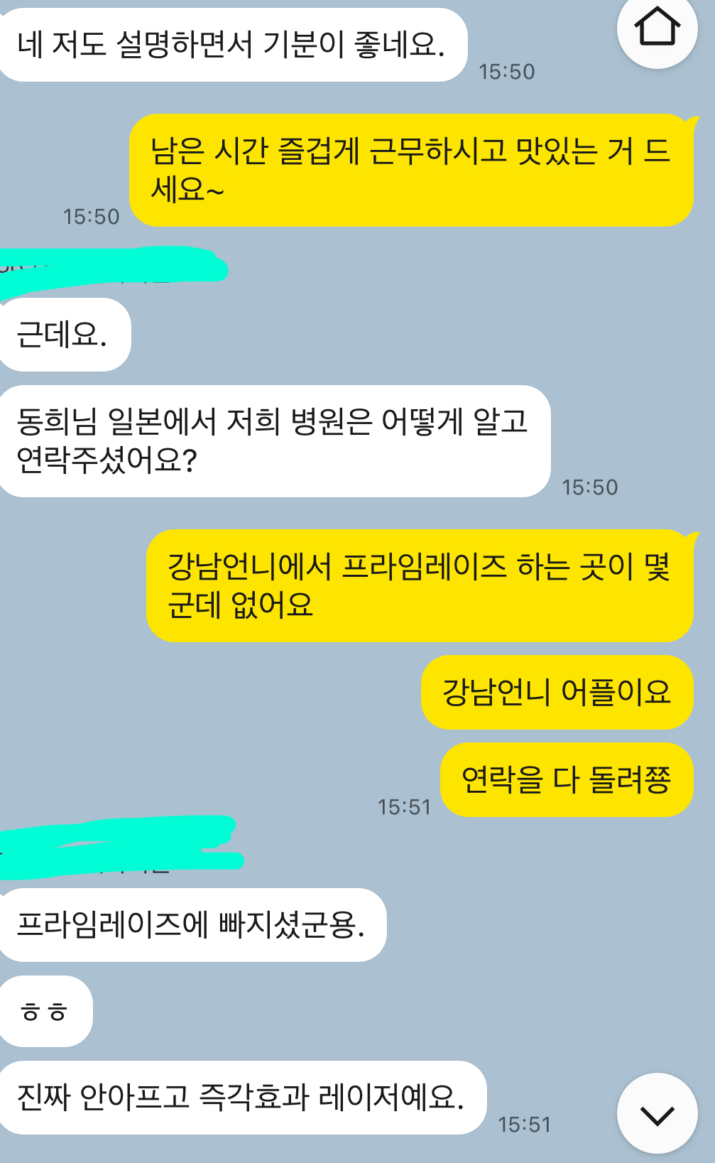 3번 병원으로 결정했다. 가격면에서도 위치도 좋았지만 결정적으로 카톡 상담하는 직원분이 너무 인간미 있고 귀여웠다.