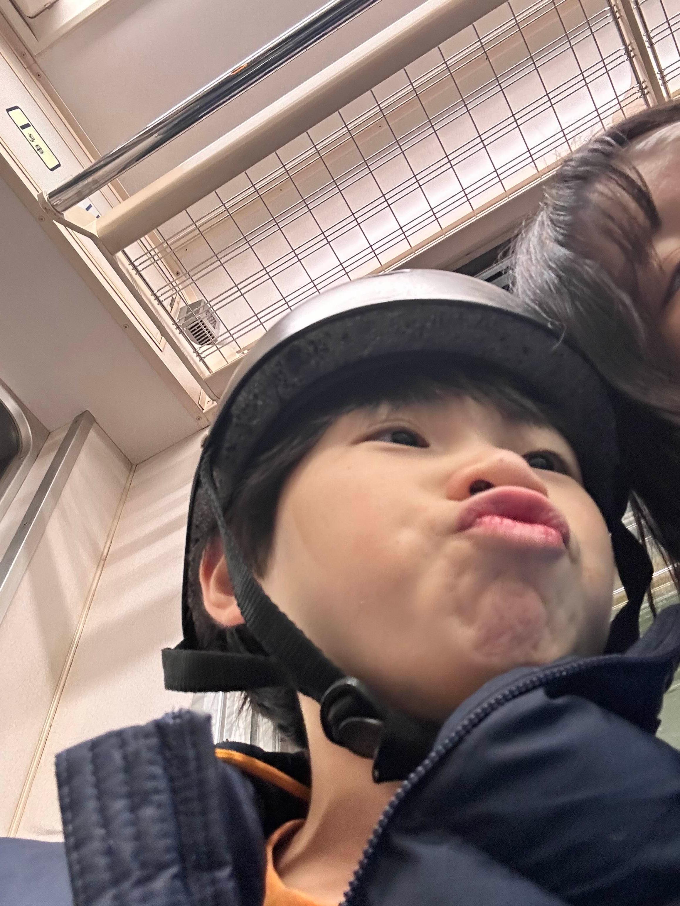 지하철에서 남의 시선 신경 안 쓰고 엄마한테 뽀뽀하는 시늉하는 하루.