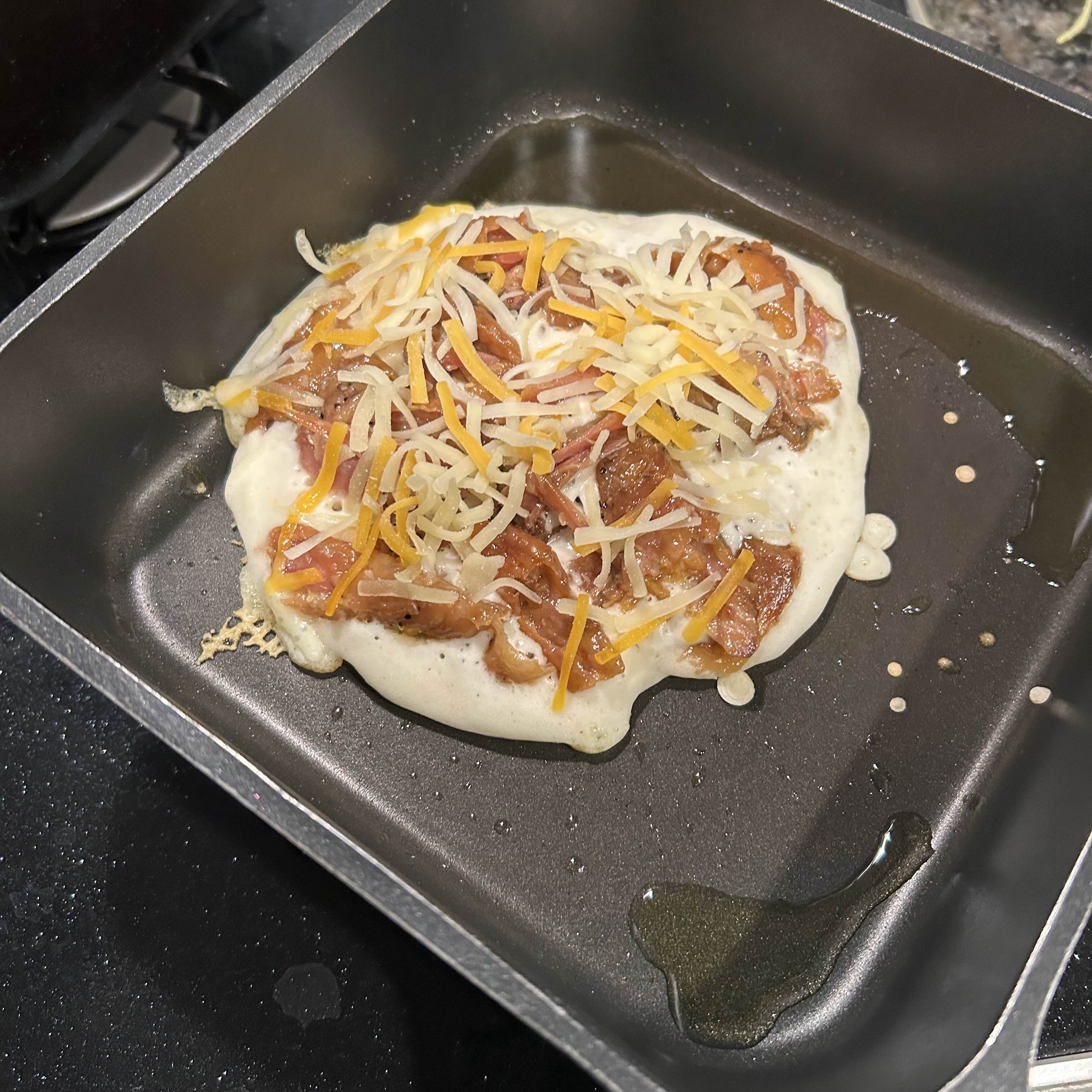 어제 먹던 닭다리조림을 뜯어서 오코노미 야끼 반죽에 올려봤다.