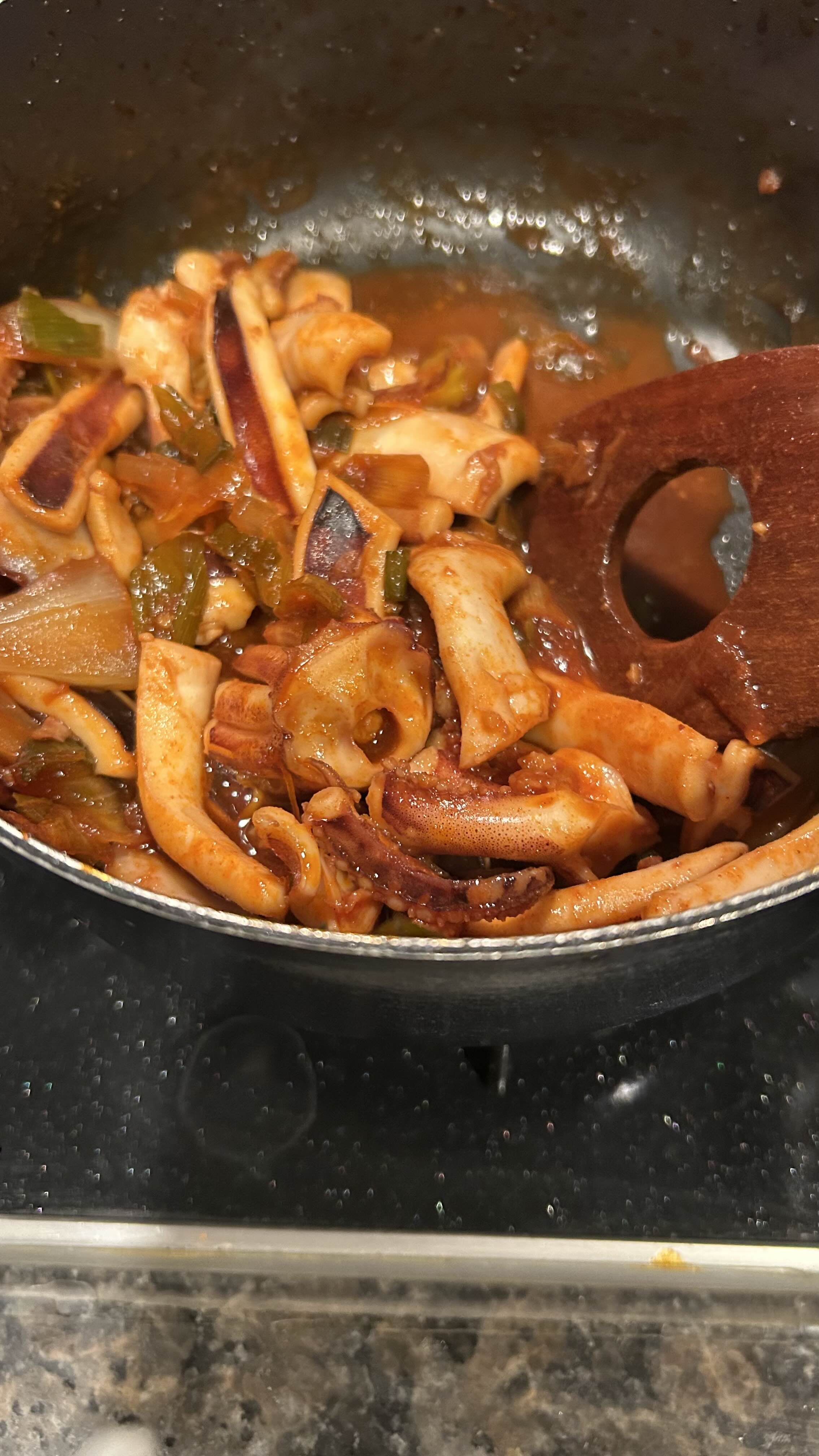 피망 양파 오징어를 볶아 봤다.