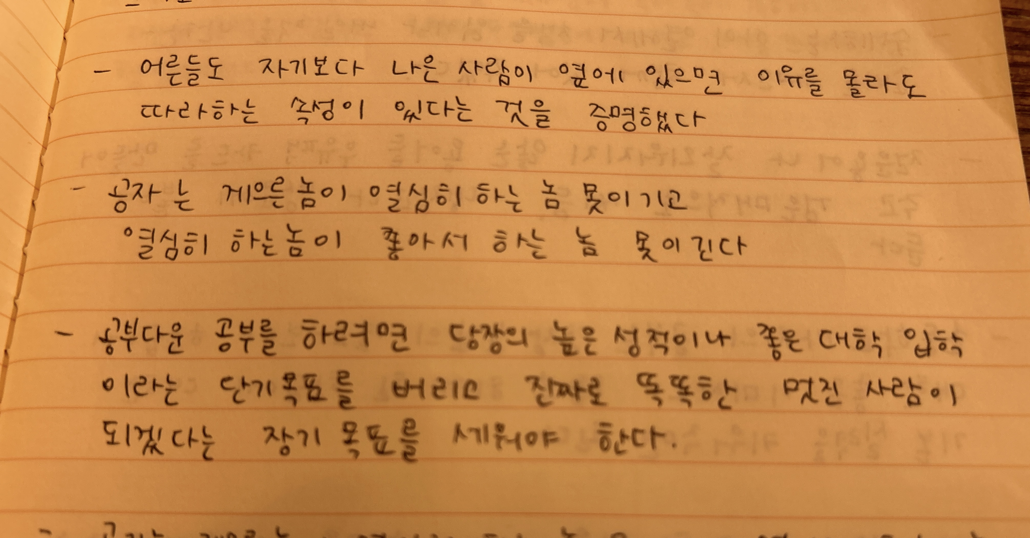 생각보다 나는 여러 번 노트를 다시 읽었다. 그때는 몰랐는데 지금은 더 이해가 가는 문장도 있었고 이제 더 이상 상기하지 않아도 몸에 배어있는 문장들도 있었다. 두 번째 노트를 준비했다.