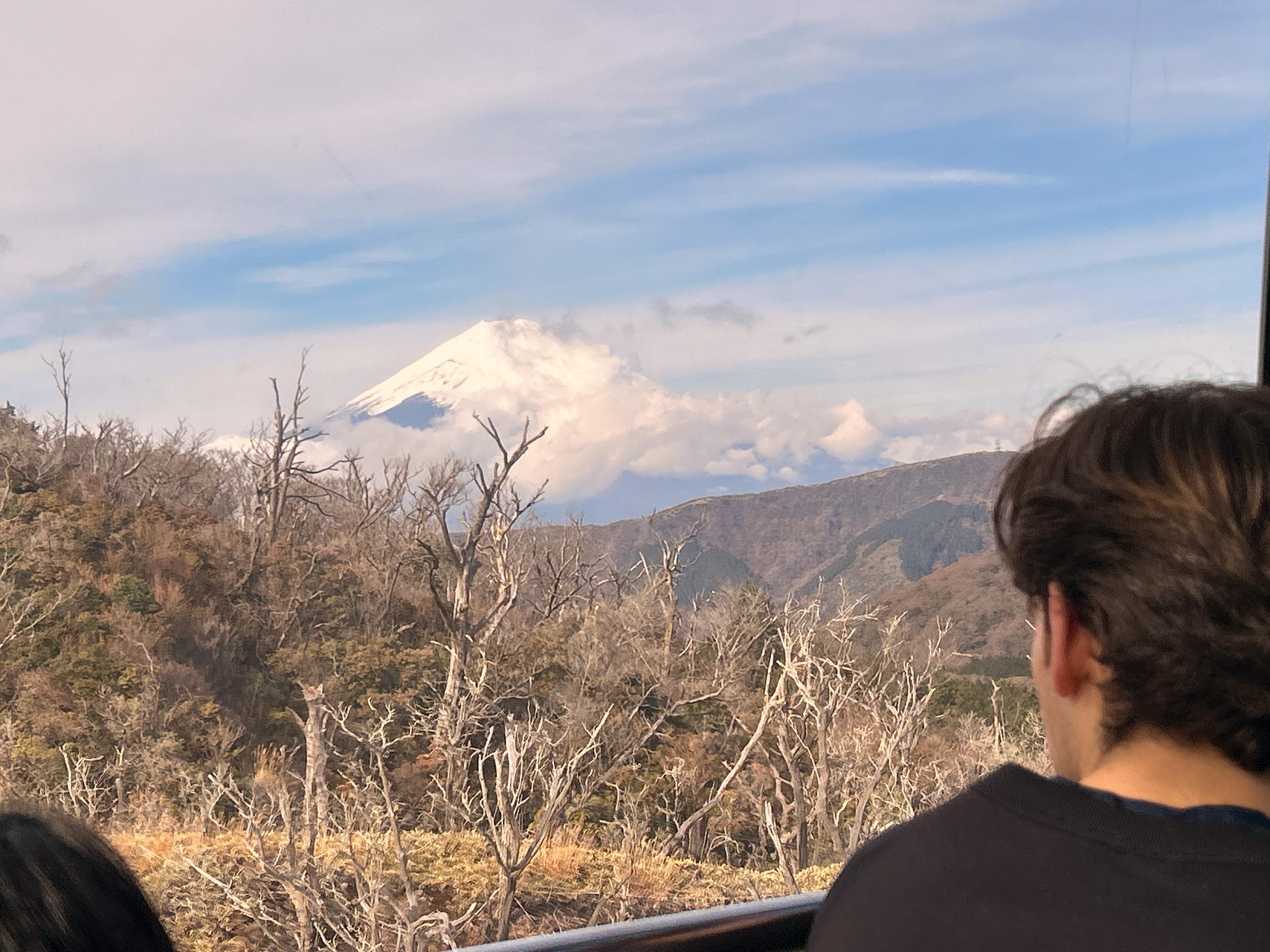 케이블카 안에서 보이는 후지산에 모두가 오오…!!! 감탄사를 쏟아냈다. 연말연시 하코네가 핫한 이유는 그런 날 후지산을 보면 매우 신성하게 느껴지기 때문이다. 이렇게 또렷한 후지산을 내놓은 날씨에 정말 성은이 망극 해질라 그랬다. 대운이 느껴짐. 진짜… 대박이다…