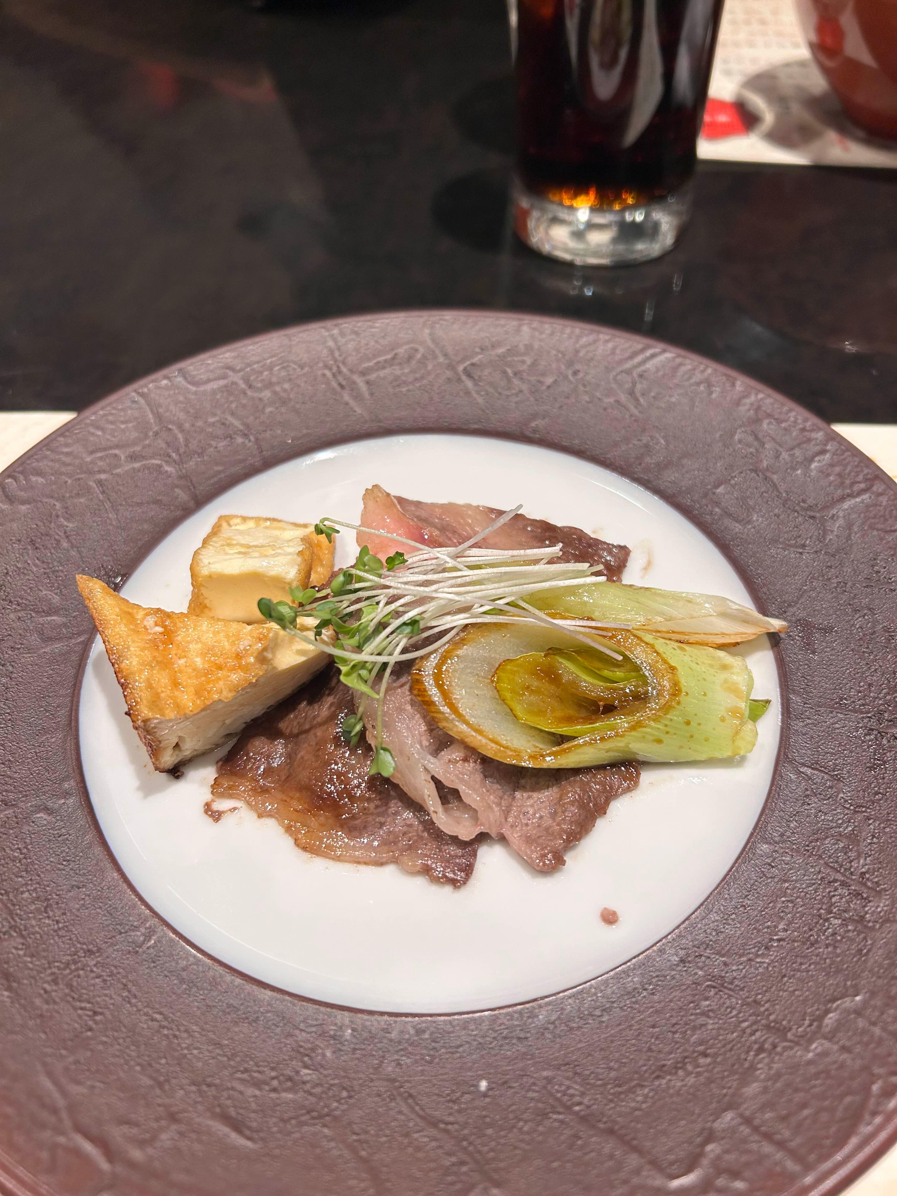 우리 테이블을 담당한 아저씨는 아직 중수였는지 뒤에서 계속 마스터의 감시를 받고 있었다. 안경쓰고 예리한 눈빛의 마스터가 꼼꼼하게 체크해서 우리까지 긴장됐다. 하루랑 몰래 한국말로 아저씨 힘내요... 흑백요리사 응원하는 마음으로 속삭였다. ㅋㅋ 하루가 야채 안 먹으니까 3인분으로 나누지 말고 저희 부부한테만 나눠달라고 부탁드렸는데 중간에 잊어버리시고 하루 접시에도 야채가 놓였다. 내가 다시 얘기해보려고 했더니 그런 나를 하루가 눈빛으로 가로막았다. '아저씨의 실수를 마스터에게 들키게 해선 안돼!' 나는 조용히 끄덕이며 하루가 못 먹는 야채를 슬쩍슬쩍 가져다가 먹어줬다.