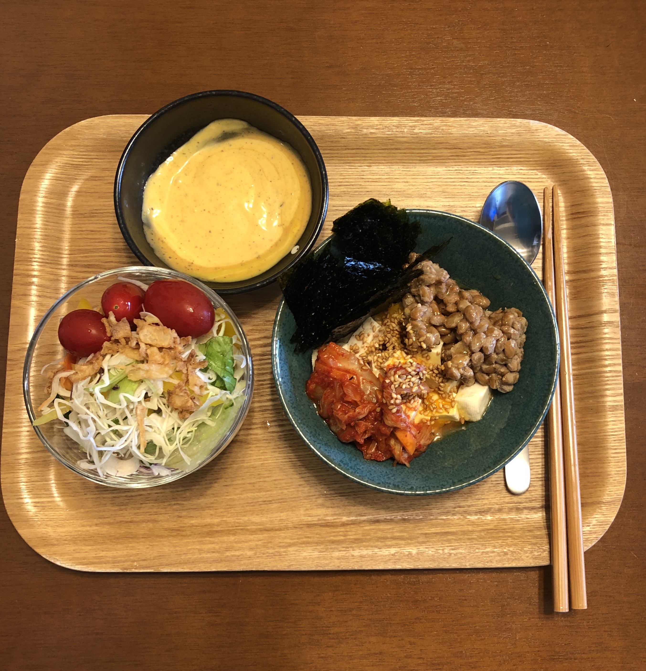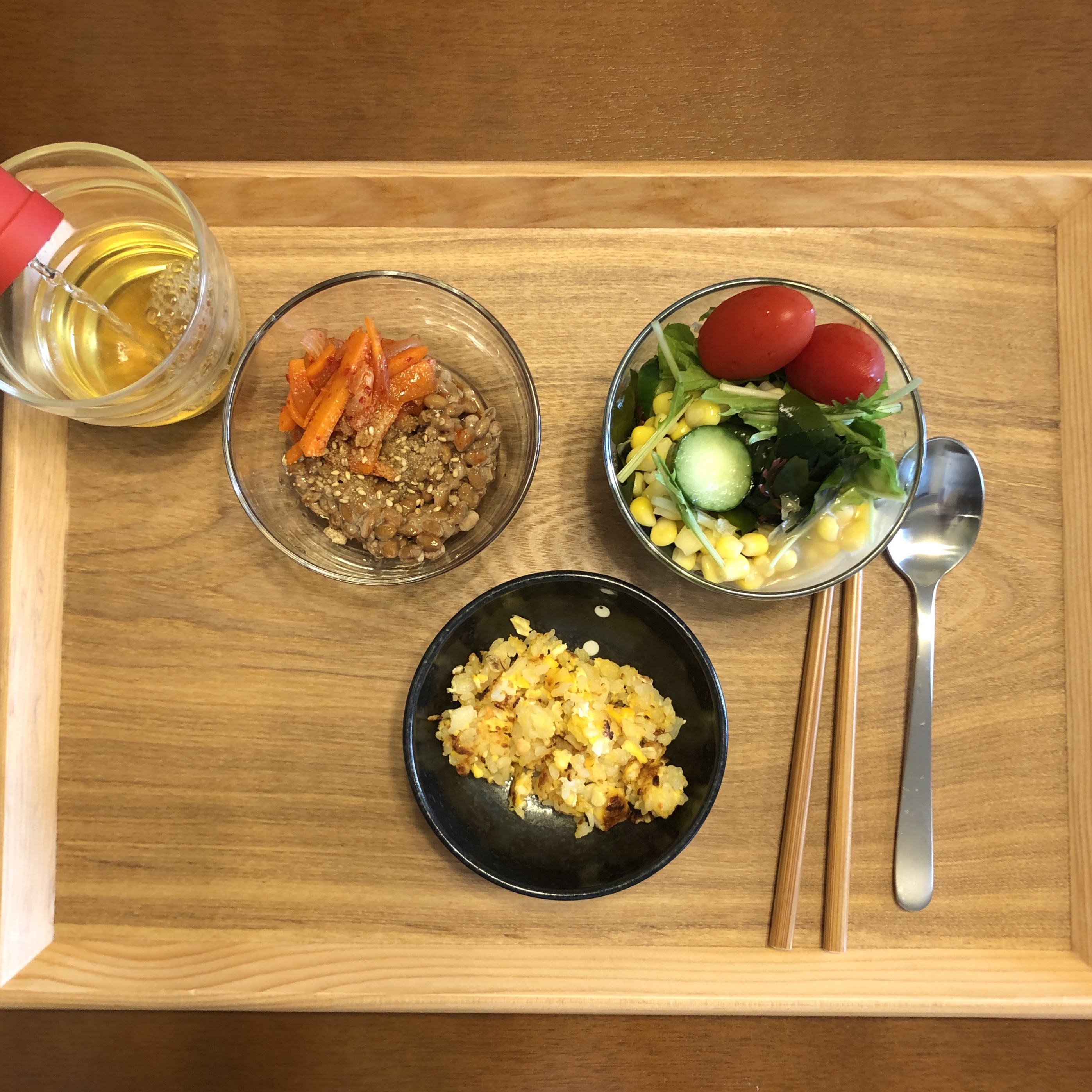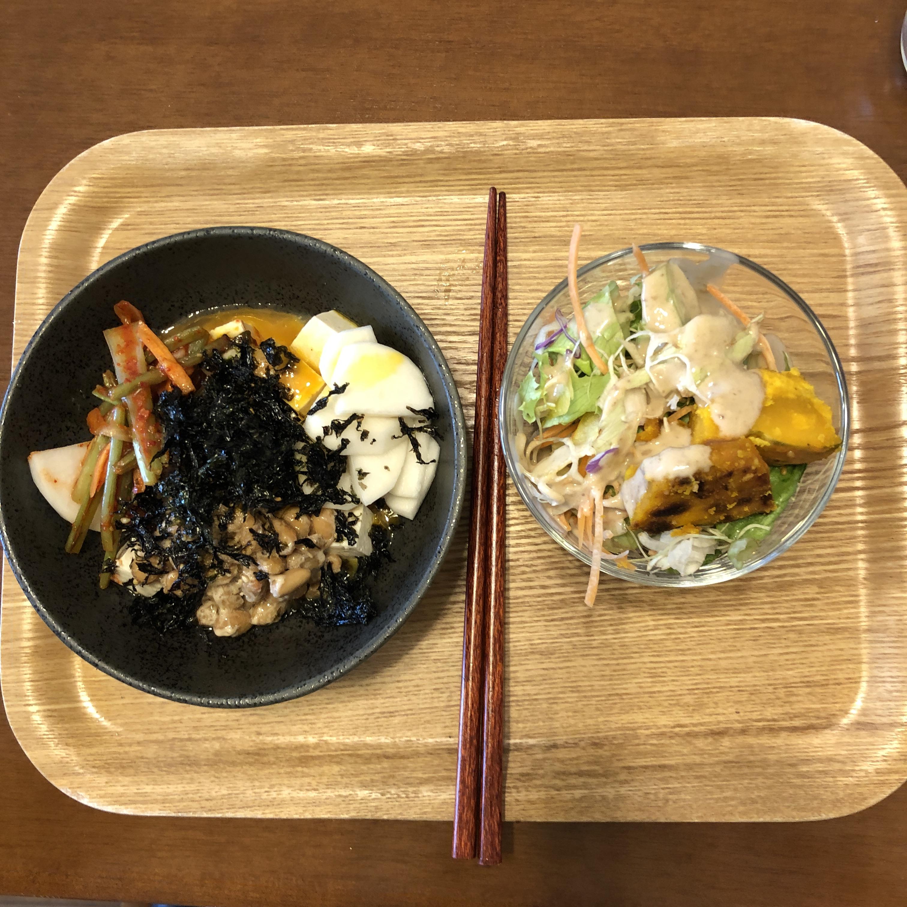낫또, 샐러드, 계란볶음밥