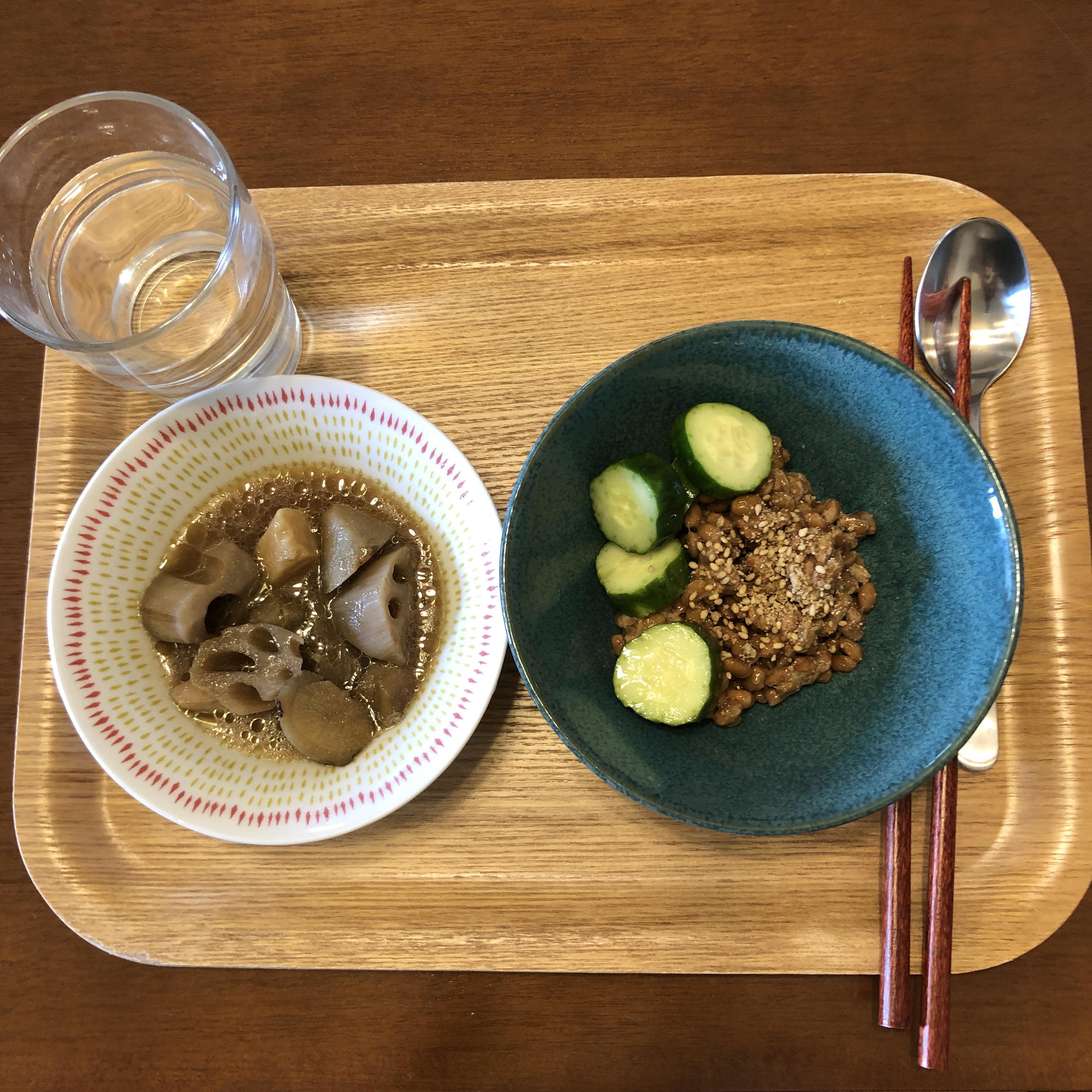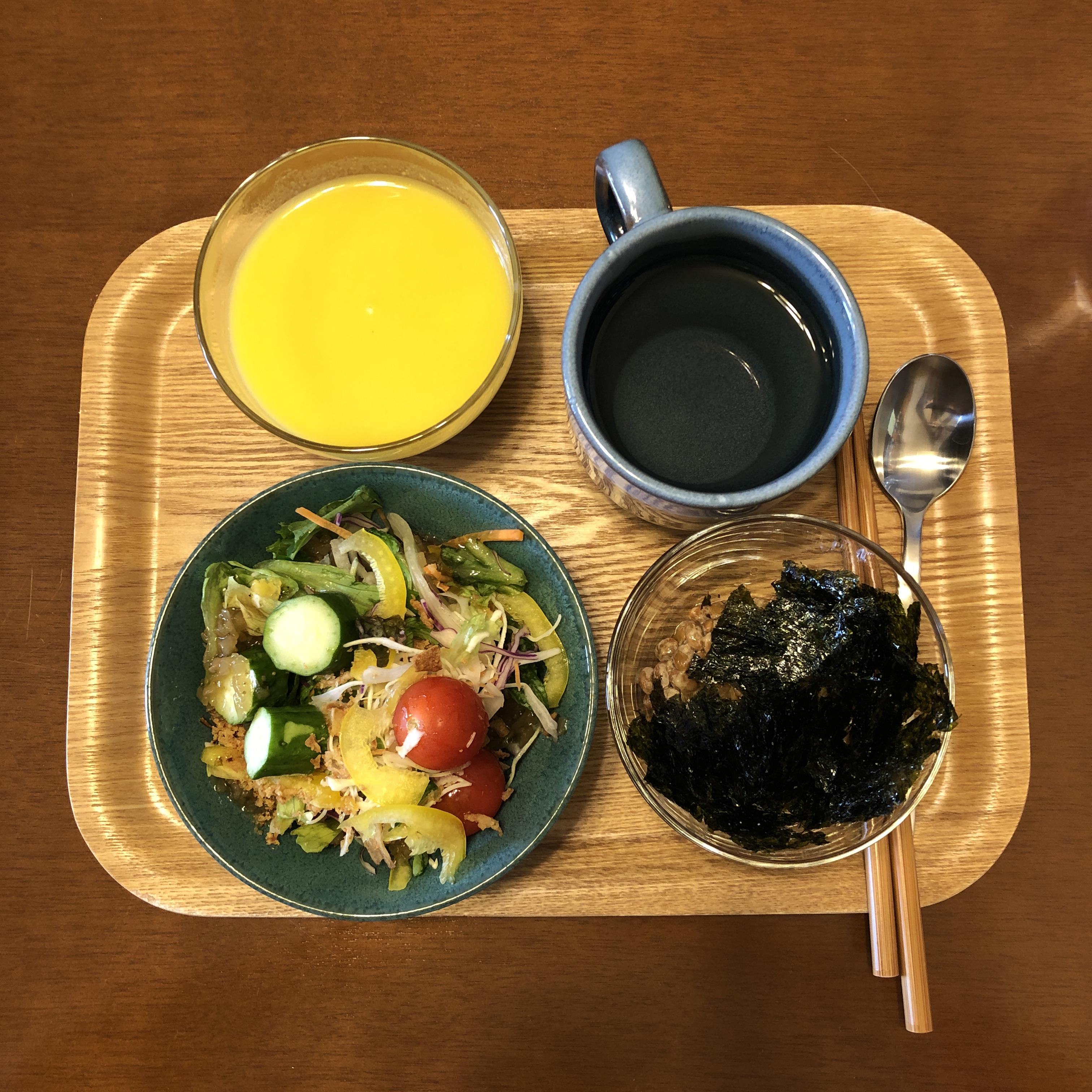 아점. 고구마 샐러드, 낫또.