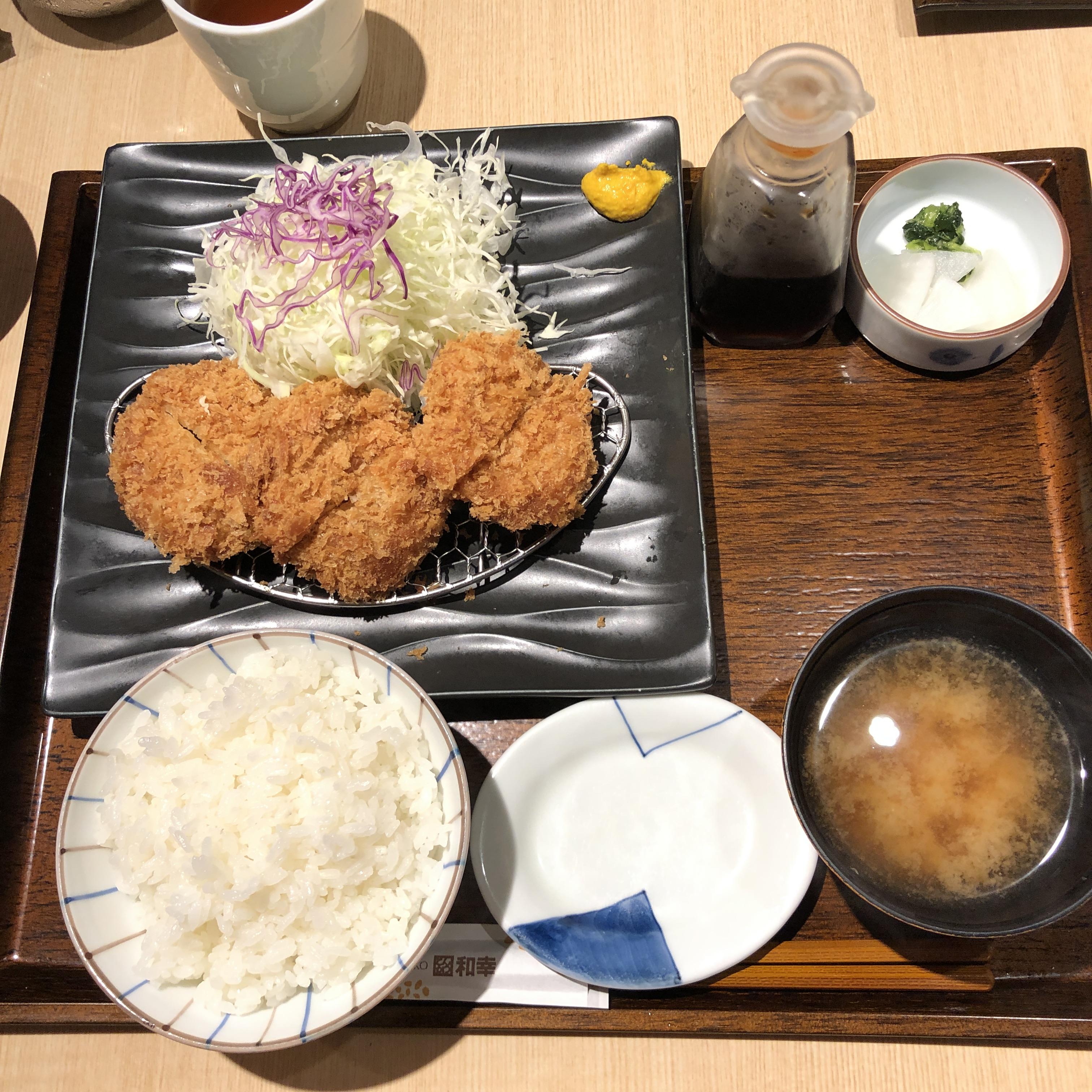 여기서 내가 먹고 충분했던 양은 밥 조금, (약 50g먹으면 만족스러움) 미소시루, 돈카츠 세덩이 중 1덩이, 케군이랑 바꿔 먹은 닭가슴살 카츠 한 덩이, 양배추는 사진의 양 2배. (리필 무료)