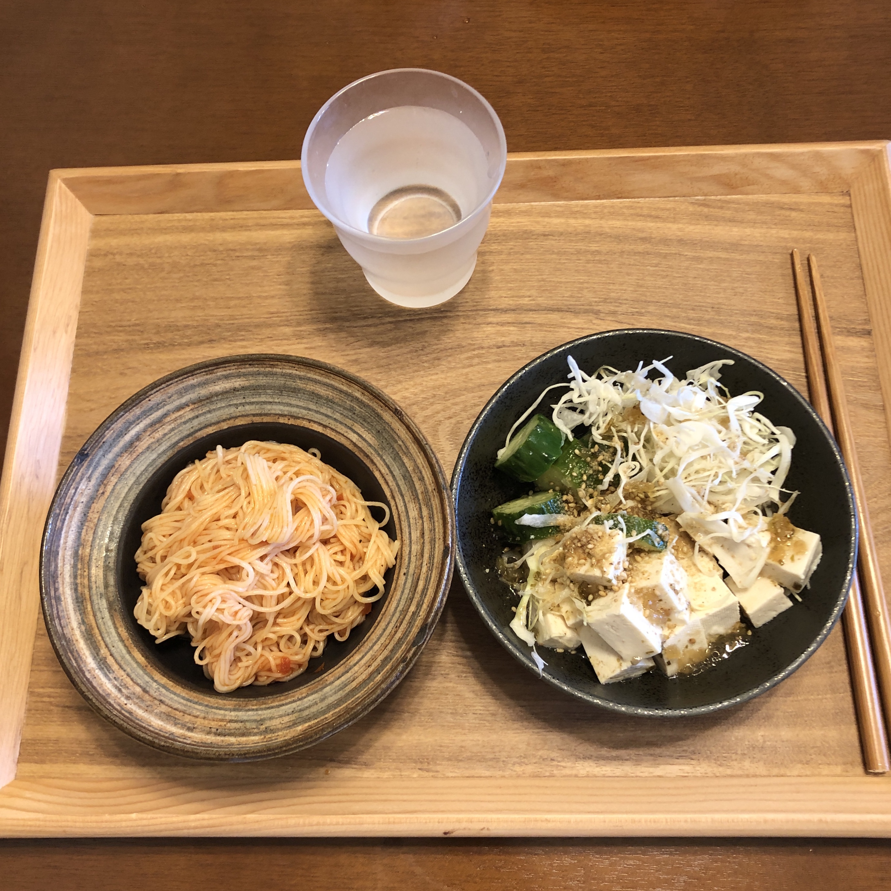 곤약 파스타. 두부샐러드